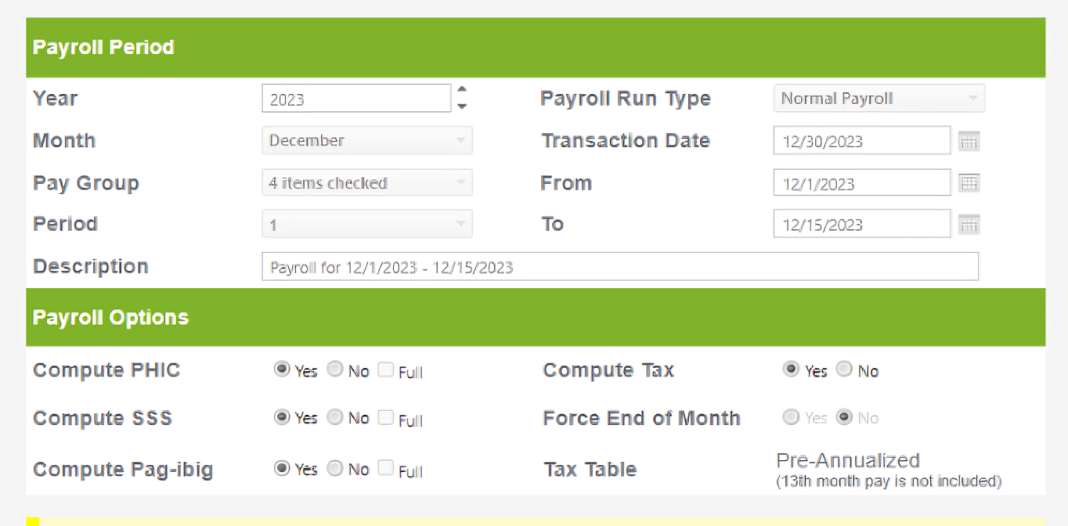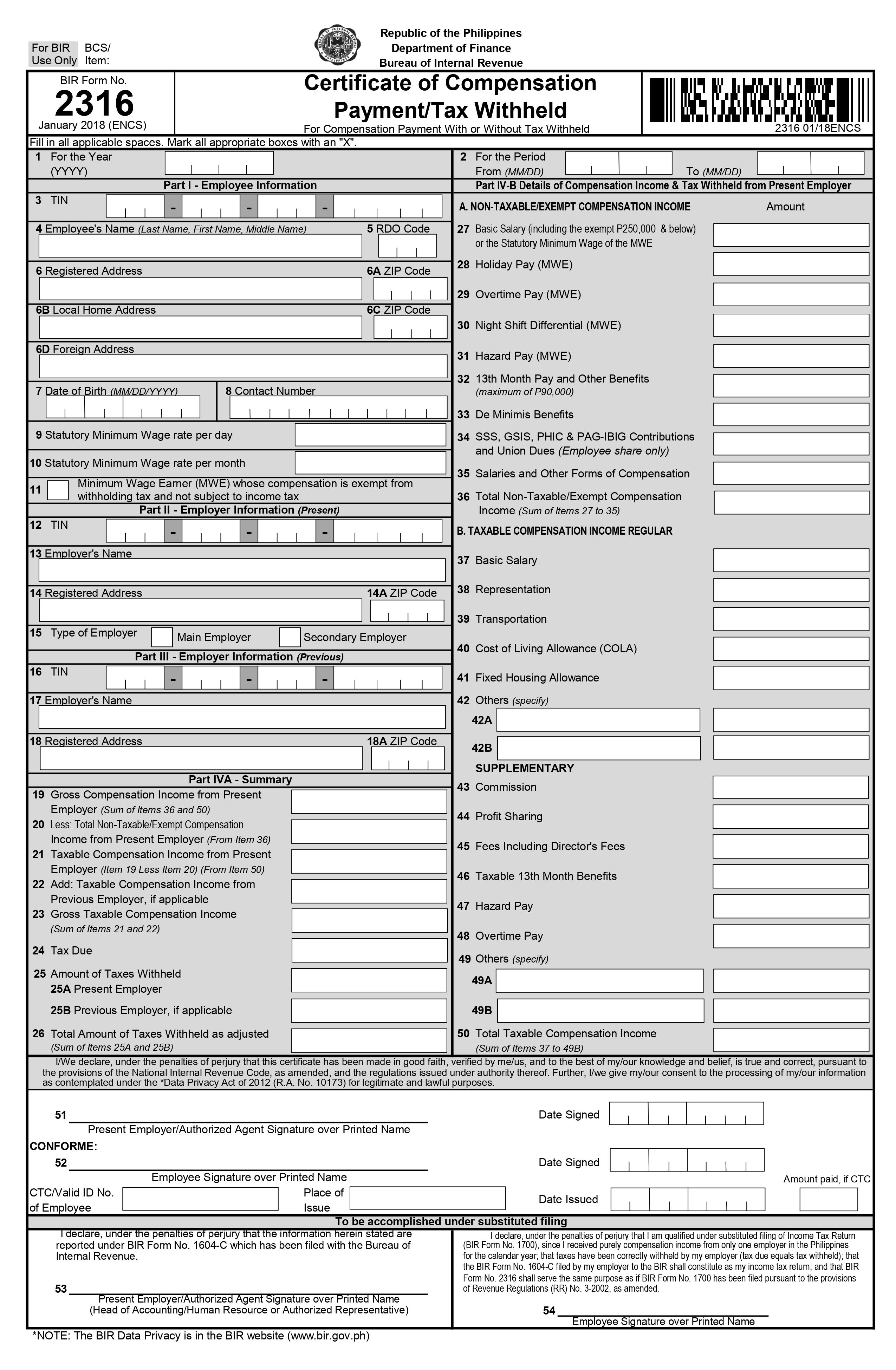 • Generate BIR Form 2316 (per employee)
